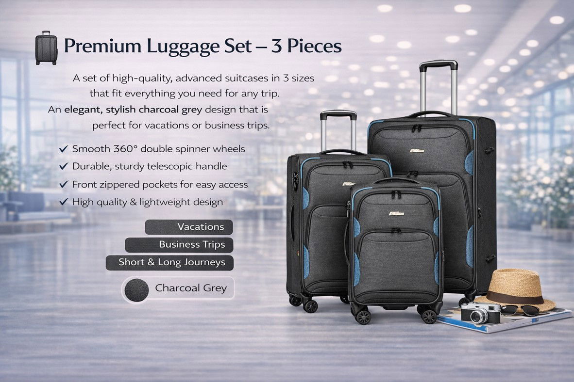 🧳 סט מזוודות טיול יוקרתי בגוון אפור