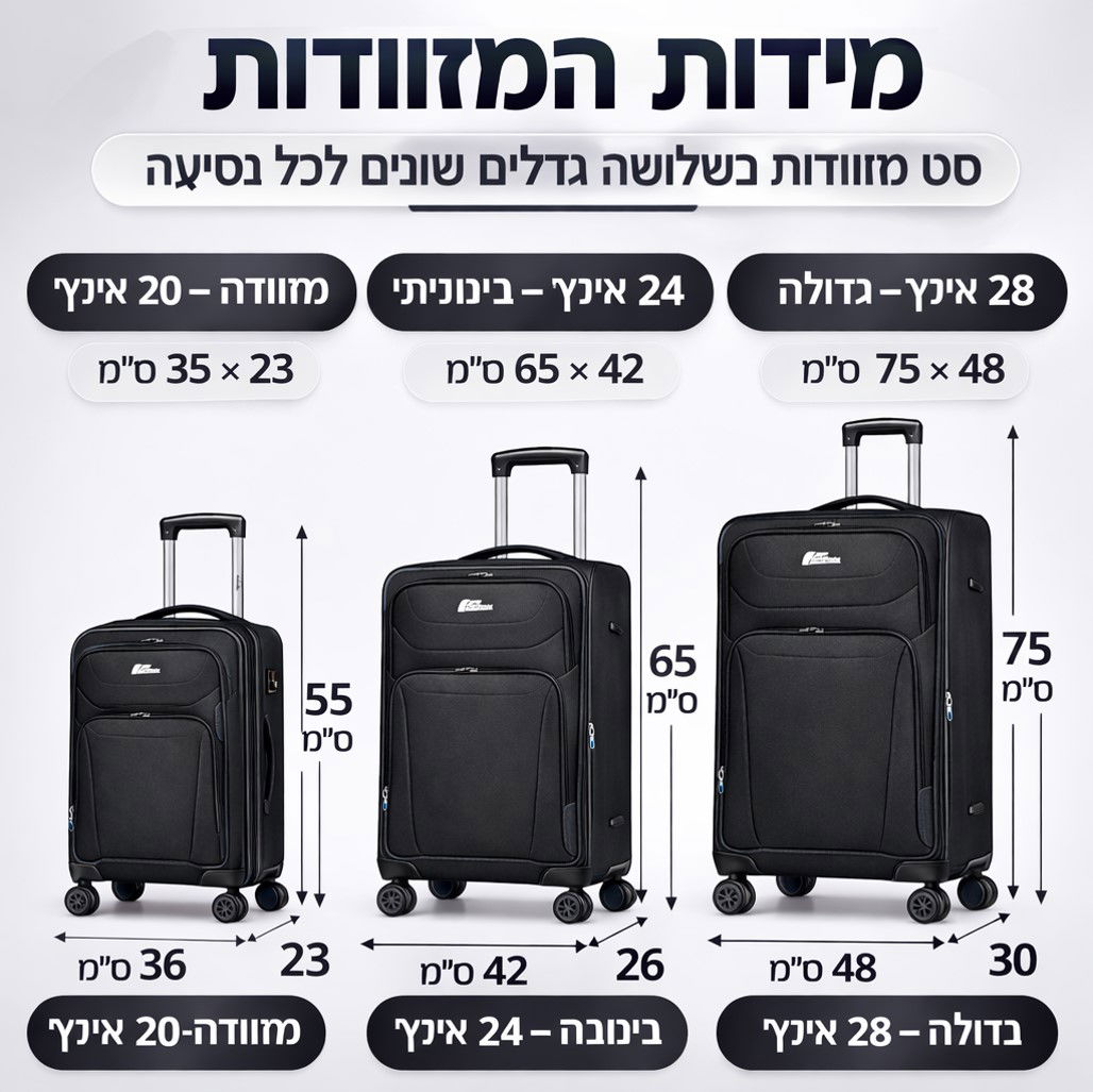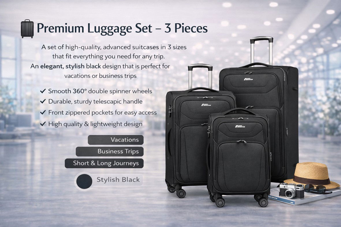 🧳 סט מזוודות טיול יוקרתי בגוון שחור