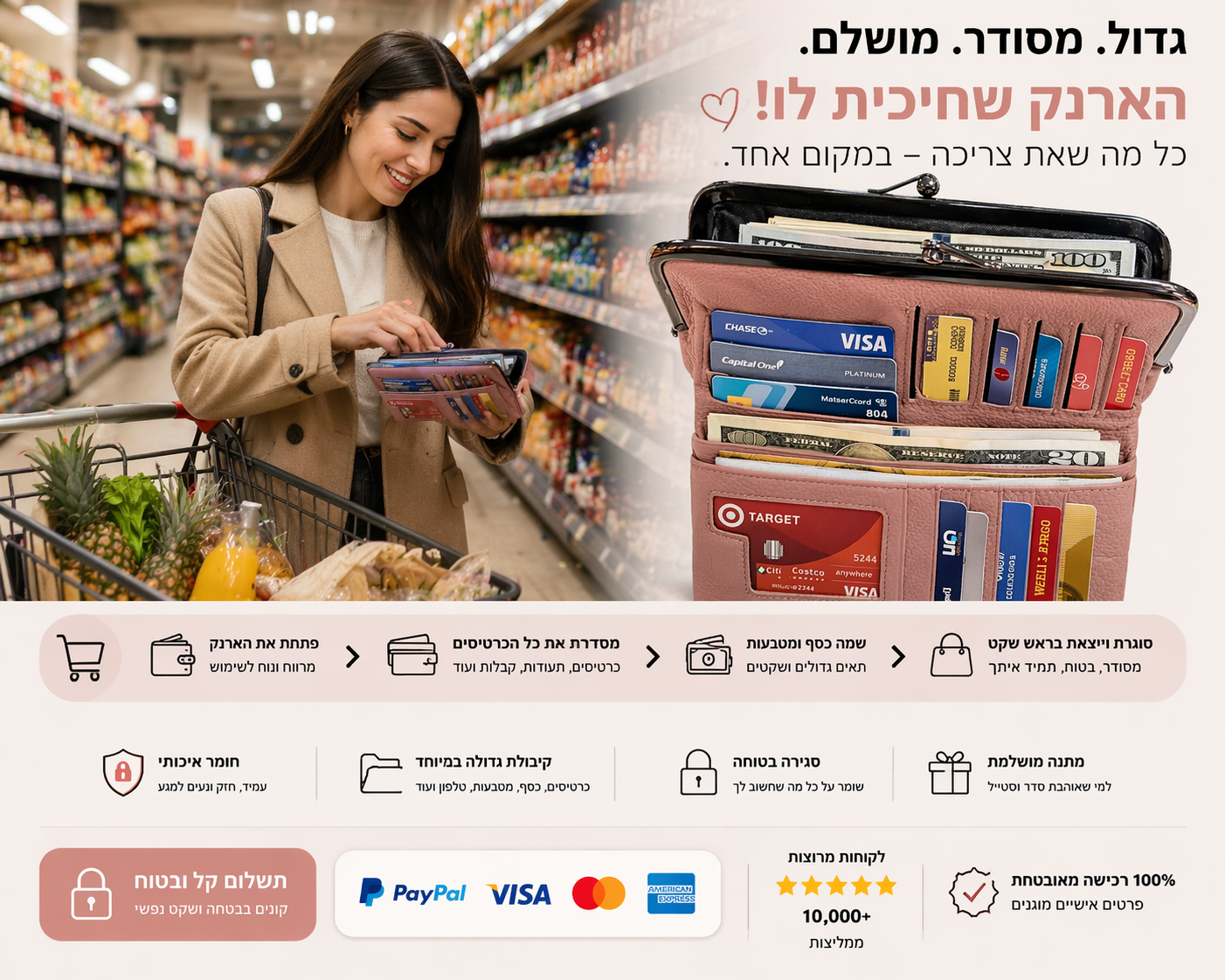 ארנק עור אמיתי לנשים עם סגירת קליפס-שילוב של פונקציונליות וסטייל. מאפשר ארגון מהיר של כרטיסי אשראי, תעודות ומזומן, עם גישה קלה בכל רגע. בחירה משתלמת למי שמחפשת איכות גבוהה, תחושה נעימה ביד ושימוש ארוך טווח. ✨מפרט: ✔️חומר: עור אמיתי איכותי ✔️סוג: ארנק נשים ארוך ✔️שימוש: יומיומי / נסיעות / מתנה ✨יתרונות ✔️עיצוב אלגנטי ומודרני ✔️ארגון נוח לכל הדברים החשובים ✔️ קל לנשיאה ומתאים לכל תיק ✨ למה לבחור ב-VIGOR? ✔️ עור נאפה אמיתי – רך, עמיד ויוקרתי ✔️ עיצוב חכם – מקום לכרטיסים, מזומן ורוכסן ✔️ איכות גבוהה לאורך זמן ✔️ נוחות מושלמת לשימוש יומיומי ✔️ מראה אלגנטי שמתאים לכל הופעה איכות שמרגישים בכל נגיעה ✨ מידות: אורך: 19 ס״מ גובה: 10 ס״מ עומק: 2 ס״מ 👉 כל מה שאת צריכה — במקום אחד 🛡️ אחריות מלאה 🔥 אחריות איכות 100% אנחנו מתחייבים: ✔️ איכות גבוהה ✔️ רוכסנים חזקים ועמידים ✔️ נוחות שימוש יומיומית 💥 במקרה של תקלה או פגם: 👉תקן באופן מיידי משלוח מהיר חינם עם שליח עד הבית לכל חלקי הארץ👉